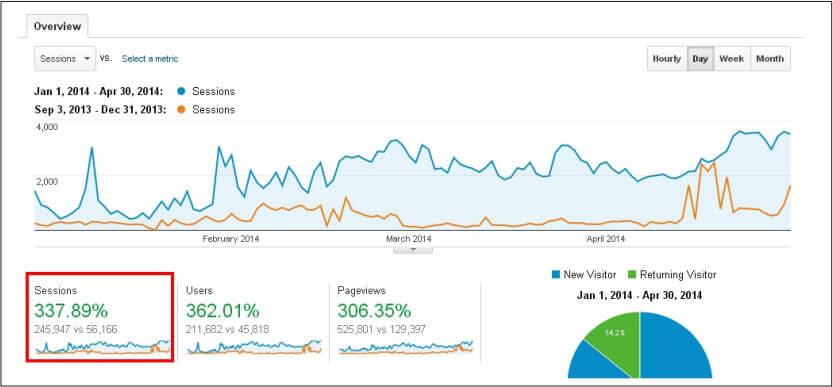 Over a period of 4 months of continuous on-page and off-page SEO activities, beginning January 2014 to April 2014, we saw huge improvements in traffic.