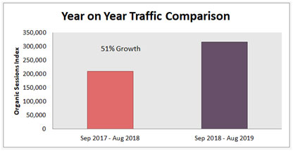 Overall, we saw a fantastic improvement of 51% of organic traffic as compared to the last year for the 12 months period Sep’18-Aug’19 vs Sep’17-Aug’18.