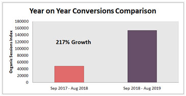 As per Google Analytics, we delivered 217% increase in booked appointment through organic sessions as compared to the last year for the 12 month period Sep’18-Aug’19 vs Sep’17-Aug’18.