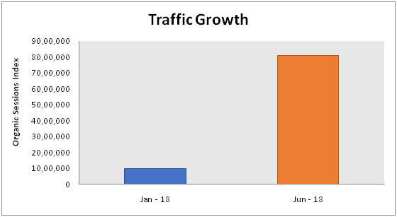 We saw a whopping increase of 588% in organic search traffic from Jan’18 to June’18. This was an awesome jump by any standards.