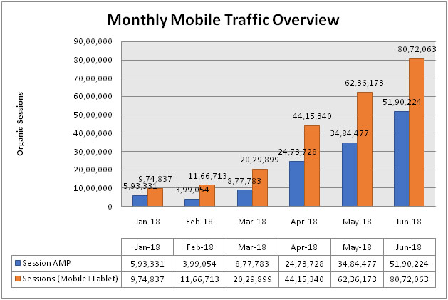 But the even more astonishing number was a 775% increase in organic AMP traffic from Jan’18 to June’18.